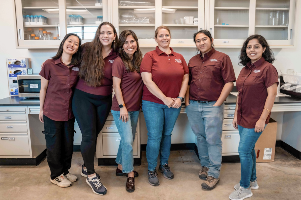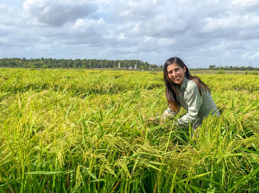 The project, “Implementing Plant Varietal Resistance for Management of the Invasive Rice Delphacid,” is a multifaceted approach to combat rice delphacid, one of the most destructive pests threatening Texas rice production. To effectively manage a pest, it is crucial to understand its phenology and implement ongoing monitoring. Thus, in the 2024 rice season, Nupur and her team in the Bernaola Lab meticulously mapped the timing and distribution of rice delphacid infestations. They also identified rice varieties most susceptible to disease and rice delphacid feeding.